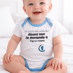 BODY “SI PAPA ET MAMAN DISENT NON…” blanc/bleu (2-6-6-5-5)