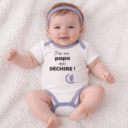 BODY “J’AI UN PAPA QUI DECHIRE” blanc/violet (4-5-5-5-5)