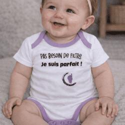 BODY “PAS BESOIN DE FILTRE JE SUIS PARFAIT” blanc/lilas (2-6-6-5-5)